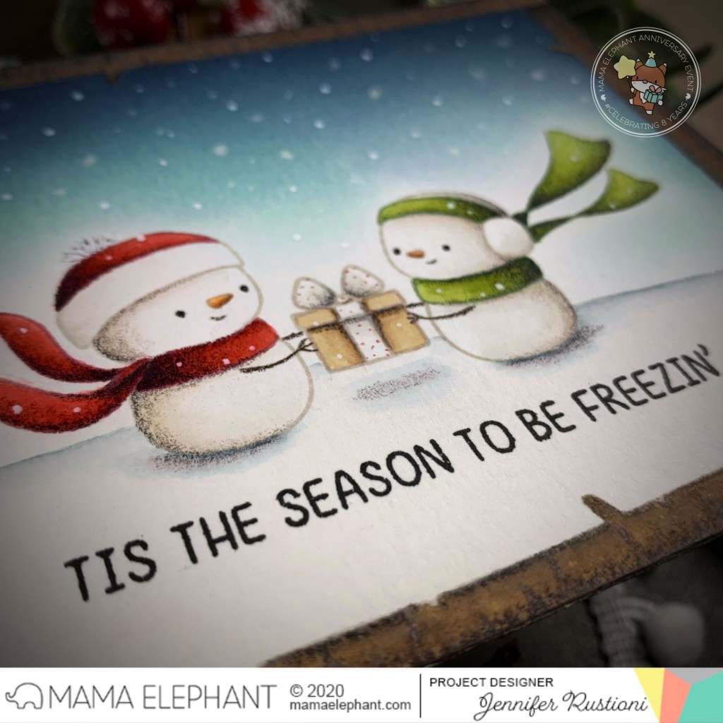 For my second project, I used the two funny Snowmen stamps and a little gift box stamp (from the “Yappy Woofmas” stamps set).