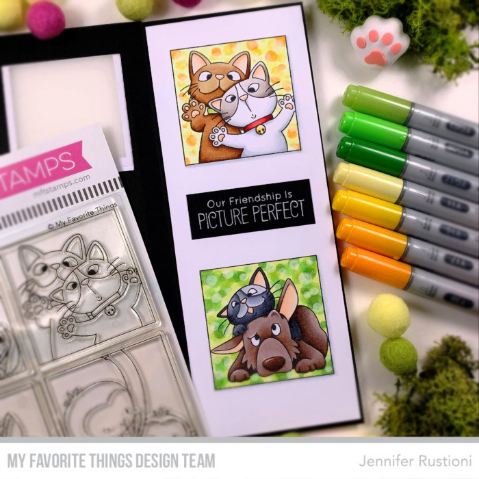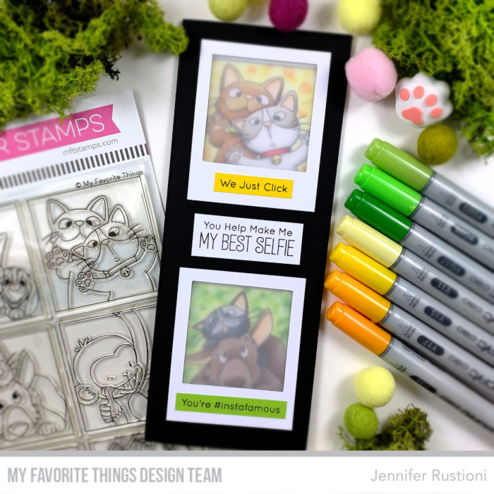 While card fronts are typically the star of the show, we’re switching things up today so both the interior AND exterior can shine! Coordinating Die-namics, with a fine border that hugs your stamped images beautifully, presents a fantastic opportunity to die cut custom windows in your card front that showcase your images and give your recipient the chance to admire your handiwork before and after they open the card.
