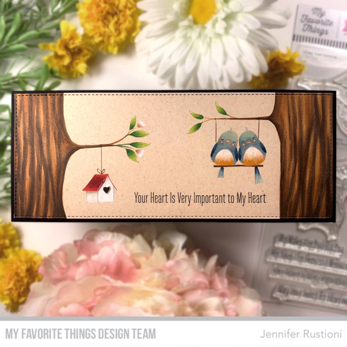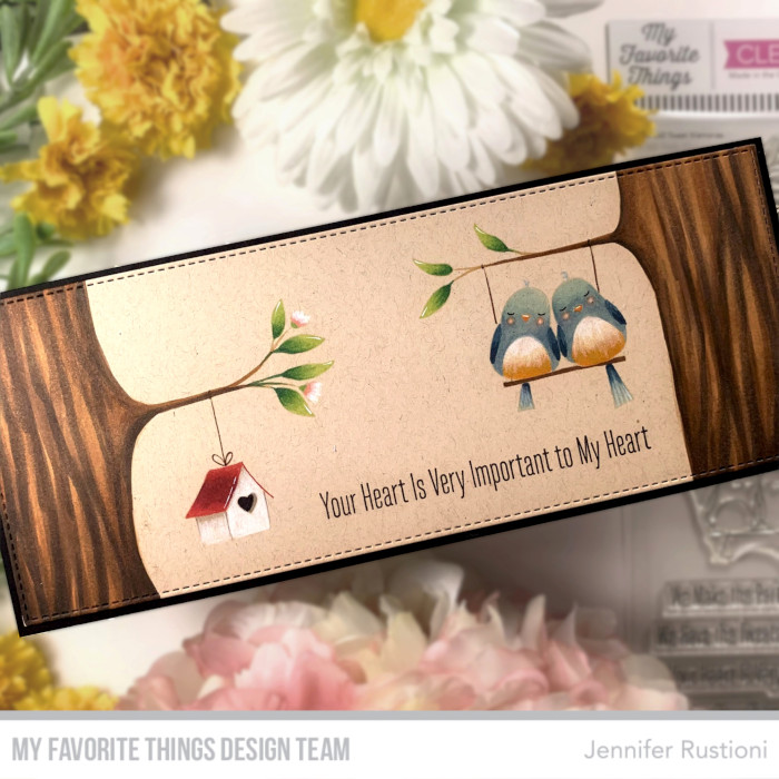 For my project I used the Slimline Starter Die-namics and I combined it with the beautiful Tweet Memories stamp set and I colored my scene with Copic markers.