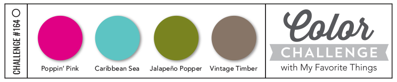 Hello friends! Welcome to the new MFT Color Challenge! The colors for Challenge #164 are Poppin’ Pink, Carribean Sea, Jalapeño Popper and Vintage Timber. Remember, you don’t have to use the EXACT colors to play – just use colors inspired by the ones you see below.