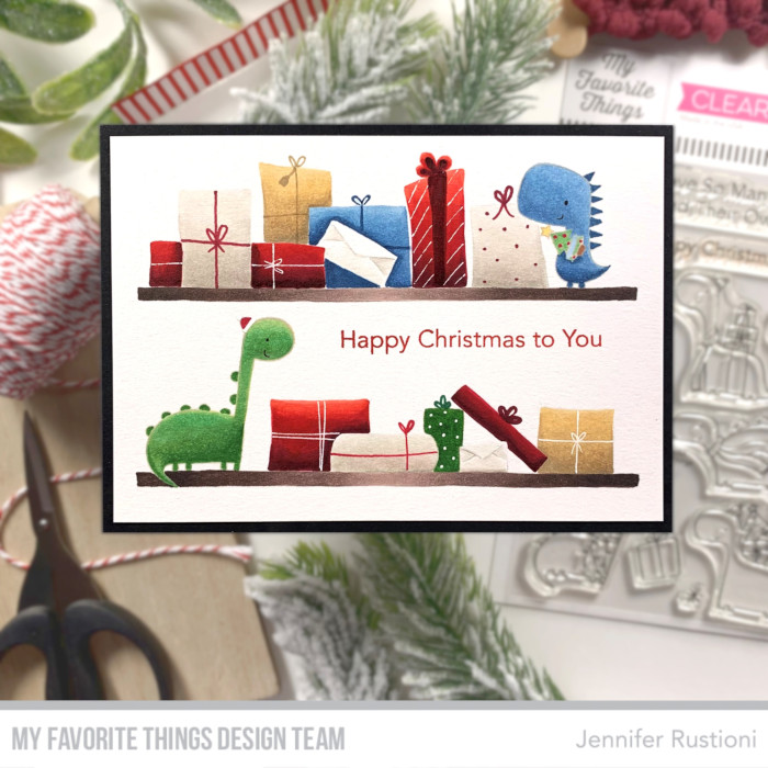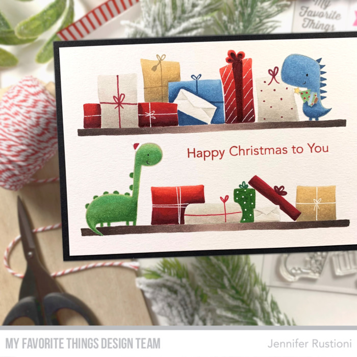 I had much fun to play with the super cute dinosaurs from the MFT Dino-mite Christmas stamp set! These little dinosaurs are so cute and funny, aren’t they?