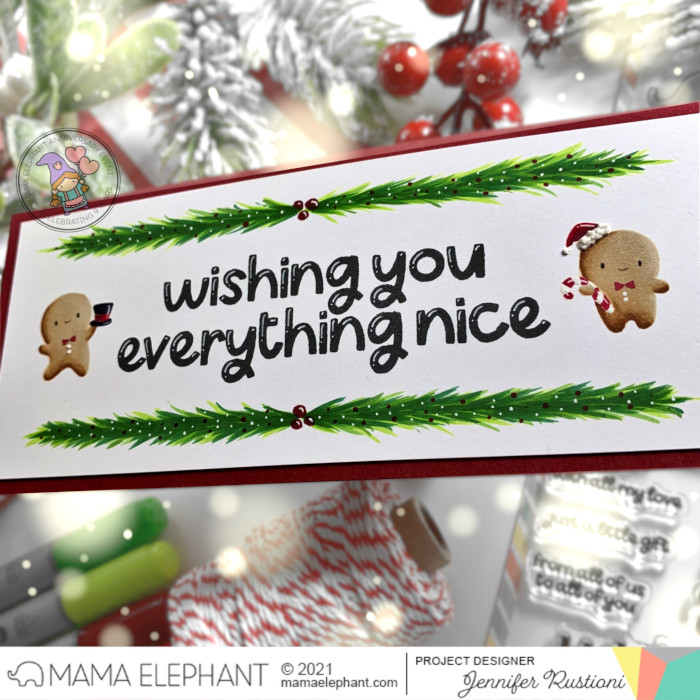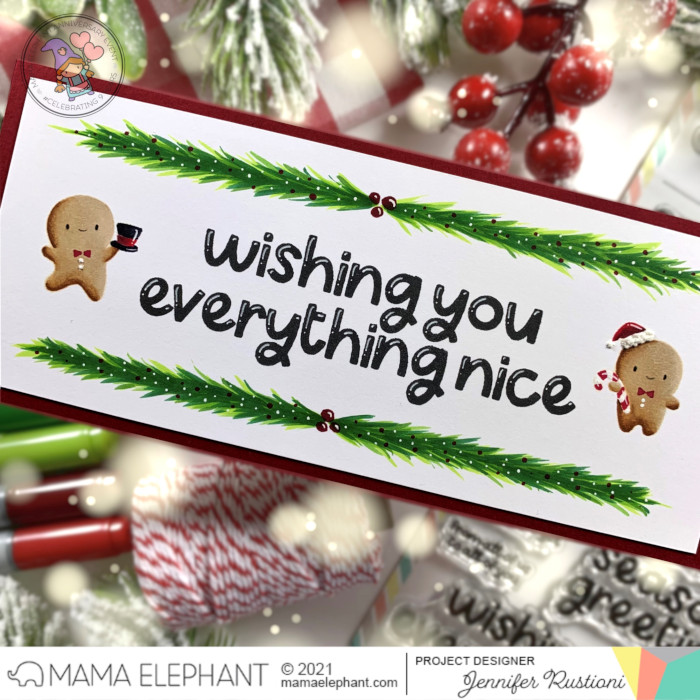 Hi there! Jennifer here today to show you the project I created combining the super cute Mama Elephant LITTLE GINGERBREAD AGENDA with the EVERYTHING NICE stamp sets!