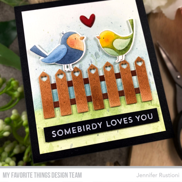Today I created a card featuring the new beautiful MFT Heartfelt Fence Die-namics and the MFT Tweet Greetings stamp set. I paired them with the MFT Spring Songbird stamp set.