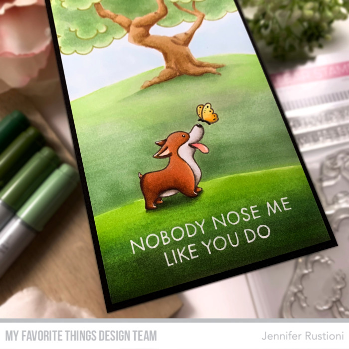 Today I created a scene card featuring the new beautiful MFT YUZU Nobody Nose Me Like You Do Stamp Set!