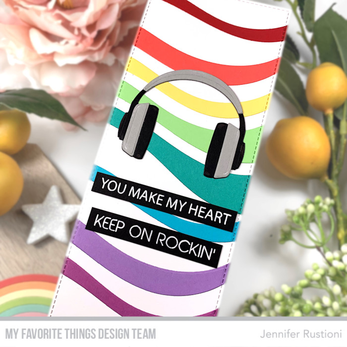 I realized a slimline card featuring the MFT Ride the Wave Die-namics and the MFT Headphones Die-namics.
