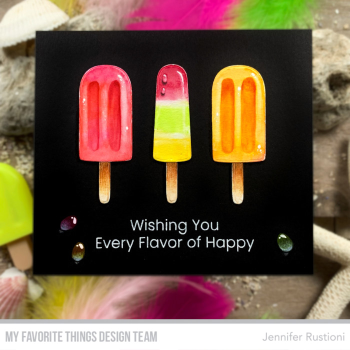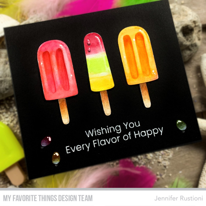 I used the MFT Black Licorice Card Stock as the base of my card and glued on it the popsicles.