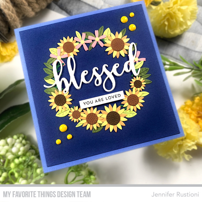 I die cut the word “blessed” with the new MFT Blessed Die-namics and glued it on the wreath.