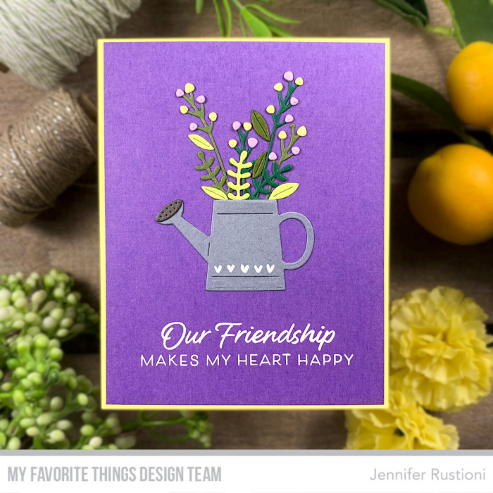 I die cut the watering can, the leaves and the flowers using the new MFT Farmhouse Foundations Die-namics. It has been a challenge for me to work with such small die-cuts, but I had fun and I’m satisfied with the result!