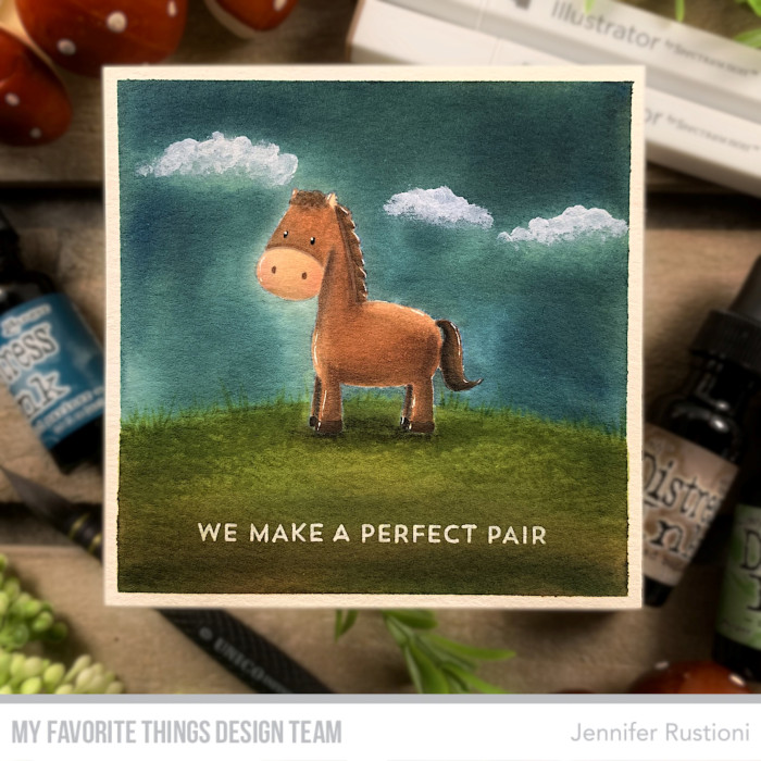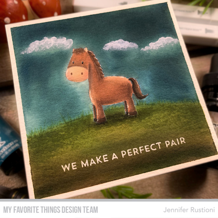 Today I’m back with a new scene card! Recently I started horseback riding, so I decide to realize a card with this sweet horse from the MFT BB The Whole Herd Stamp Set!