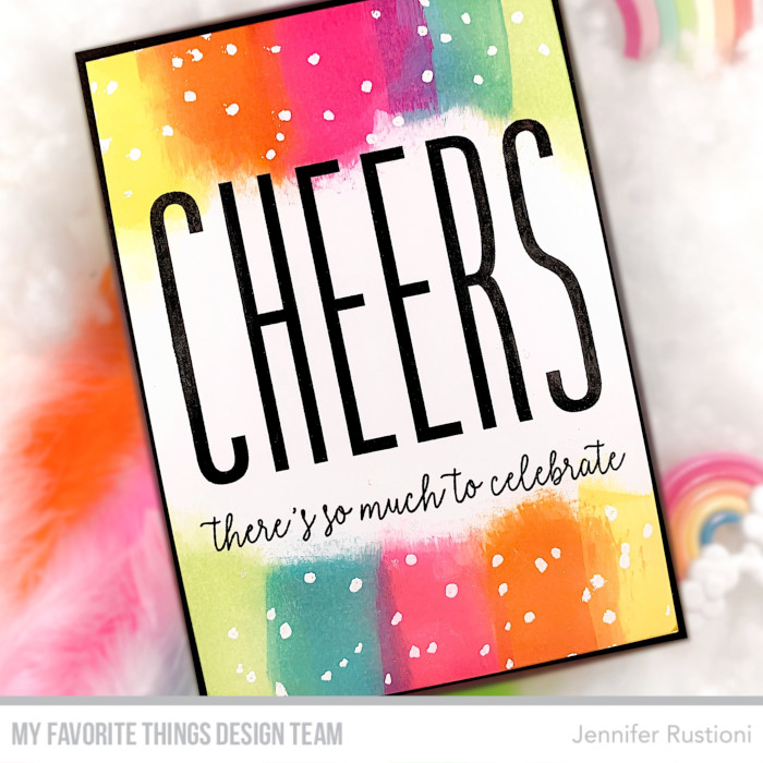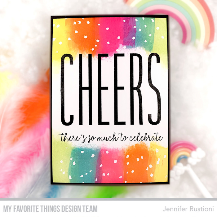 I stamped the word “Cheers” and the secondary sentiment using the new amazing MFT How To Say Cheers Stamp Set, with the Jet Black Stazon Ink Pad.