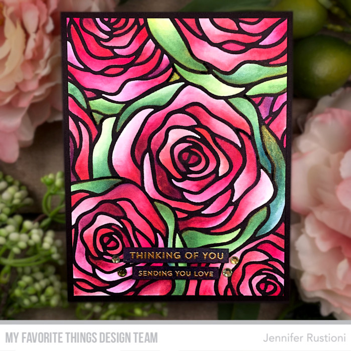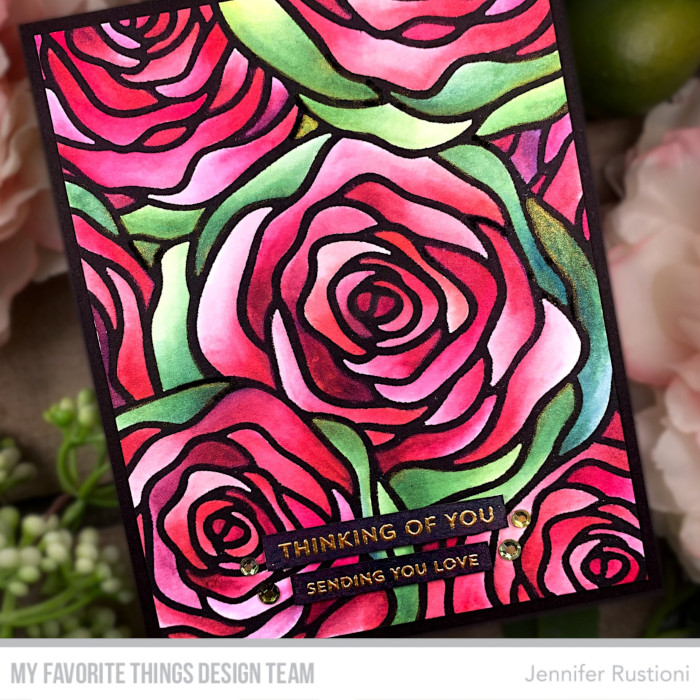 Today I realized a card featuring the new amazing MFT Rose All Around Background Rubber Stamp!