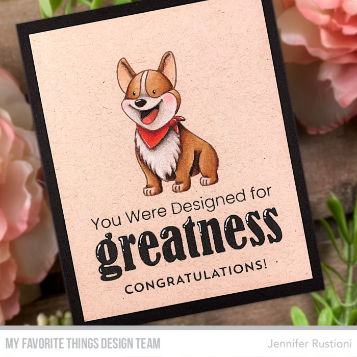 I chose a sentiment from the MFT Thrilled For You Stamp Set and stamped it at the bottom of my card. At last, I added the highlights with a white gel pen and matted my card with a black card stock.