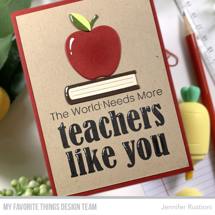 I die cut the different parts of the apple and the books using colored card stock. I assembled and glued them on a kraft card stock.