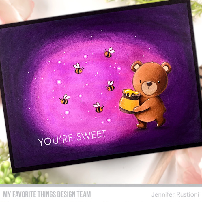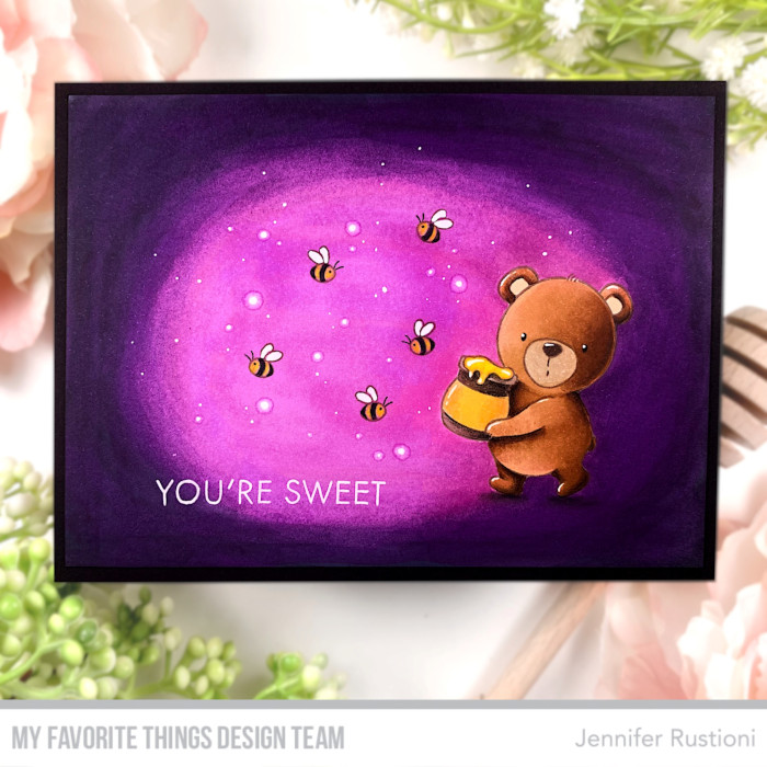 Today I realized a scene card featuring the new super cute MFT YUZU Sweet Honey Bear Stamp Set!