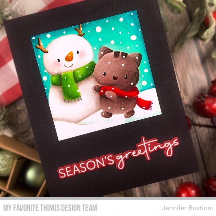 For the Release Day, my project is featuring the new super cute MFT JB Xmas Selfies Stamp Set! I had so much fun creating a small scene card!