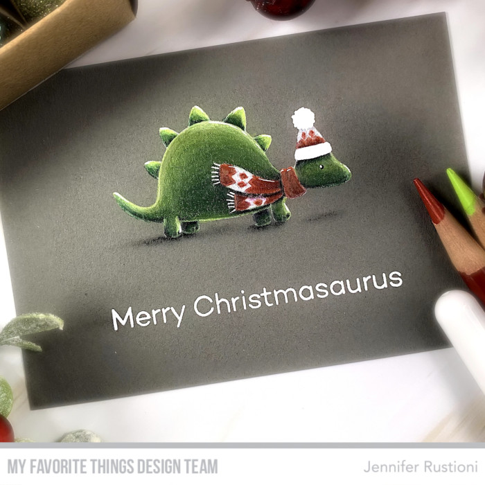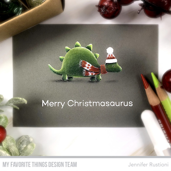 Today I realized a CAS card featuring the new super cute MFT Christmas Party Dinos Stamp Set!