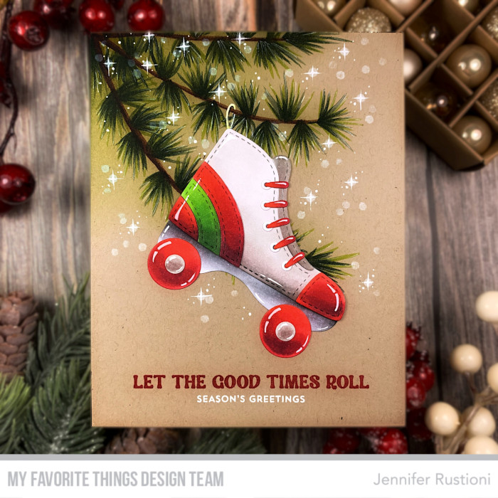Today I realized a Christmas card featuring the new super fun MFT Roller Skate Die-namics!