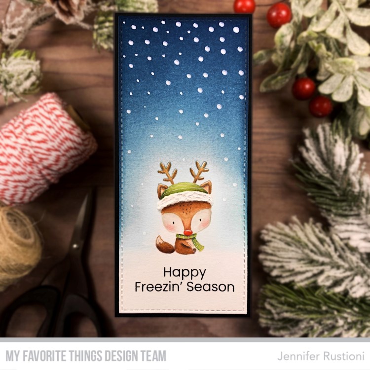 Hi everyone! Welcome to last day of MFT November Release Countdown! Tomorrow is the BIG DAY! Today my project is featuring the super cute MFT Freezin’ Season Stamp Set! These critters are so cute, aren’t they?? I chose to create a mini slimline card with this super sweet fox disguised as a reindeer! I die […]