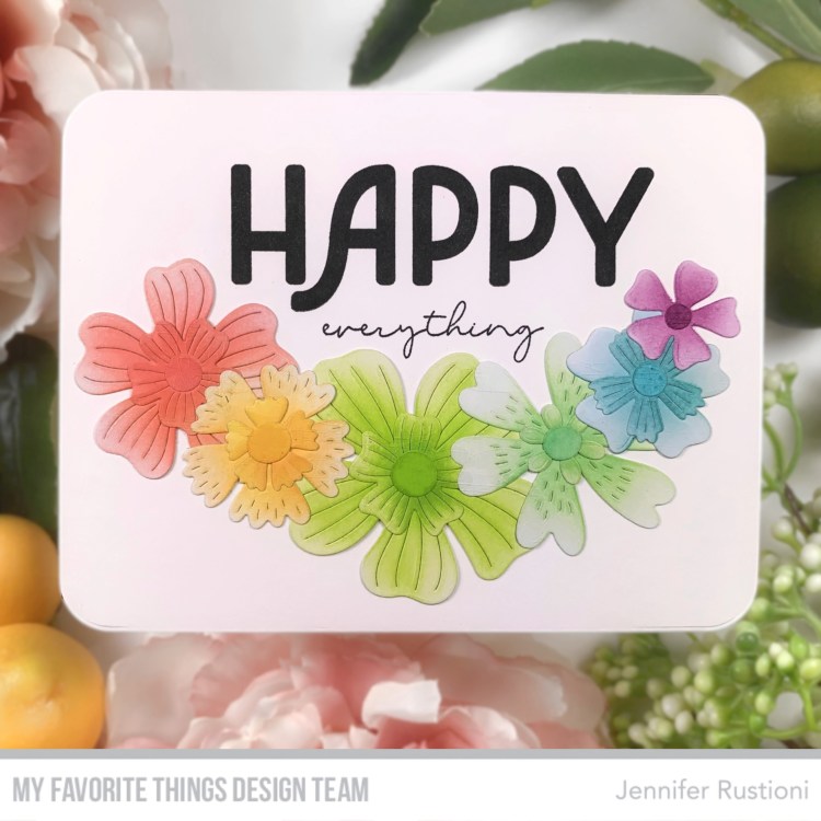Hello crafty friends! Today I’m happy to introduce you the new beautiful MFT Happy Occasions Card Kit! Today I had so much fun playing with the new MFT Bold Blooms Die-namics! I die cut the flowers and then colored them blending some Distress Ink in the shades of rainbow. I die cut the base of […]