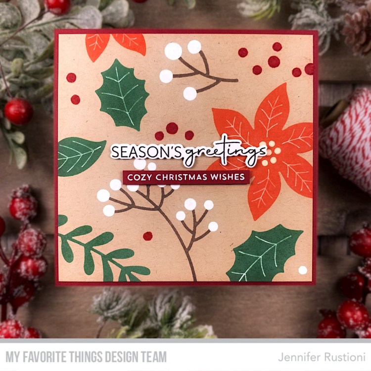 Hello crafty friends! The new beautiful MFT Christmas Poinsettias Card Kit is here! Today I realized a very easy Christmas card to-do! I created a pattern on the MFT Kraft Card Stock, using the new beautiful MFT Pressed Poinsettias Stamp Set. I stamped the flowers and all the other elements with some Distress Oxide in […]
