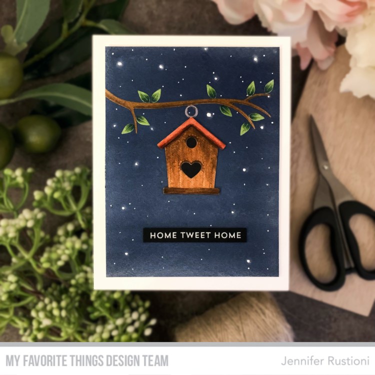 Hello crafty friends! The new amazing MFT Tweet Greetings Card Kit is now available on My Favorite Thing shop! Today I created a night scene featuring the new amazing MFT Home Tweet Home Die-namics and the MFT Beautiful Branch Die-namics. I started creating a very simple background, using watercolors with the wet on wet technique. I realized the […]