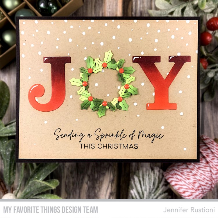 Hello everyone! Today I’m back with a new inspiration from the new amazing My Favorite Things October Release! Today I realized a Christmas card featuring the new MFT Joy Die-namics! I die cut the word JOY and colored the letters J and Y with Copic Markers in the shades of red. I replaced the letter […]