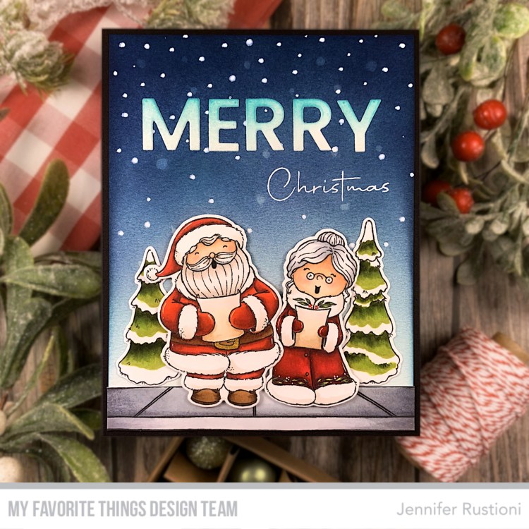 Hello friends! Today I share with you another card I realized featuring the new amazing My Favorite Things October Release! This time I used the MFT SY Christmas Carols Stamp Set, to create a layered card! I stamped Santa, Mrs Claus and the trees on the MFT No-line Coloring Card Stock. I colored them with […]