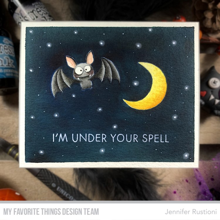 Hello crafty friends and happy Halloween!! Today I share with you an Halloween night scene card! I had so much fun playing with this funny bat MFT BB Witch Way is the Candy Stamp Set! I trimmed a piece of watercolor paper and stamped the bat and the moon using Distress Oxide Pumice Stone and […]