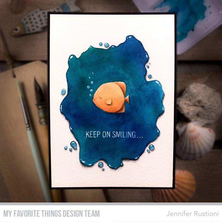 Hello crafty friends! Do you feel blue on Mondays? So, here’s the solution: grab your stamps, paints and brushes and make something fun! I chose to match this super fun and annoyed fish from the MFT BB Gill Friends stamp set with a sentiment from the MFT Sharky Sentiments stamp set. I love the contrast […]