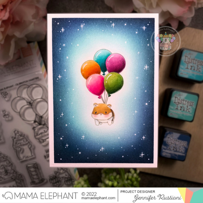 Hi everyone! Jennifer here today to show you my DS project using the beautiful ME Celebration Hamsters stamp set from the Mama Elephant February Release! I’m totally in love with these super cute hamsters!! They’re so sweet, aren’t they? I chose to realize a night scene card using the hamster with the balloons. I started […]